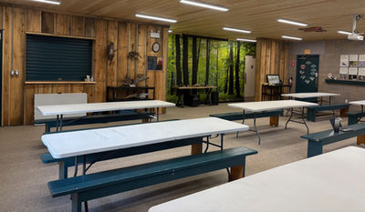 Located in the Enniskillen Valleylands in the countryside, the Russ Powell Nature Centre offers a small intimate location with a wood stove for colder seasons, large sliding doors that open onto a lawn, outdoor picnic tables, a projector and screen, a pollinator garden, stone learning circle and a completely accessible pond and trail with floating docks.